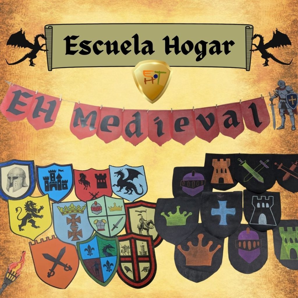 Nuestros alumnos y alumnas han sacado su lado más artístico: Repasando la historia medieval, diseñando y creando sus propios escudos y banderines para decorar el centro.